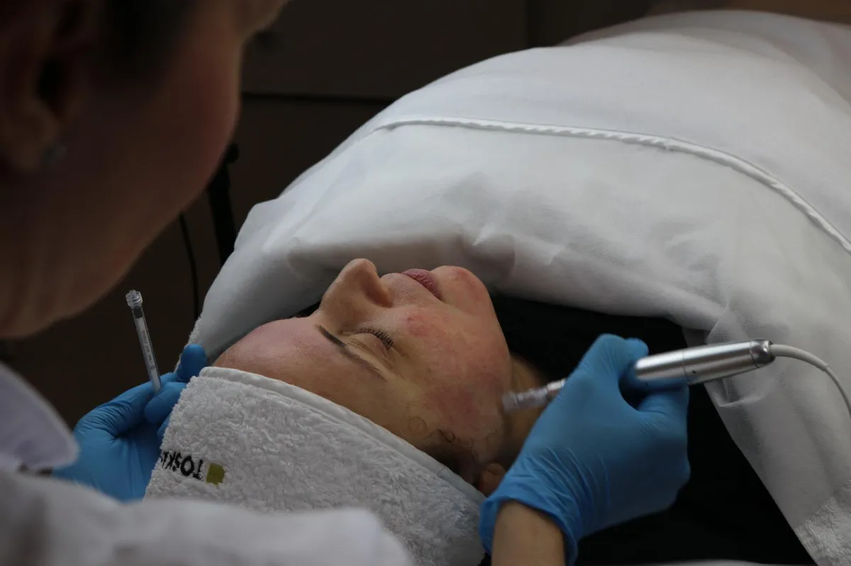 Behandlingen startar med en kemisk peeling som förnyar huden och gör den redo för nästa steg. Sedan gör vi medicinsk microneedling där vi använder skräddarsydda serum från Toskani för att ge huden exakt det den behöver. Vi avslutar med en lyxig anti-aging peel-off-mask och en skön handmassage som hjälper dig att släppa stress och koppla av.